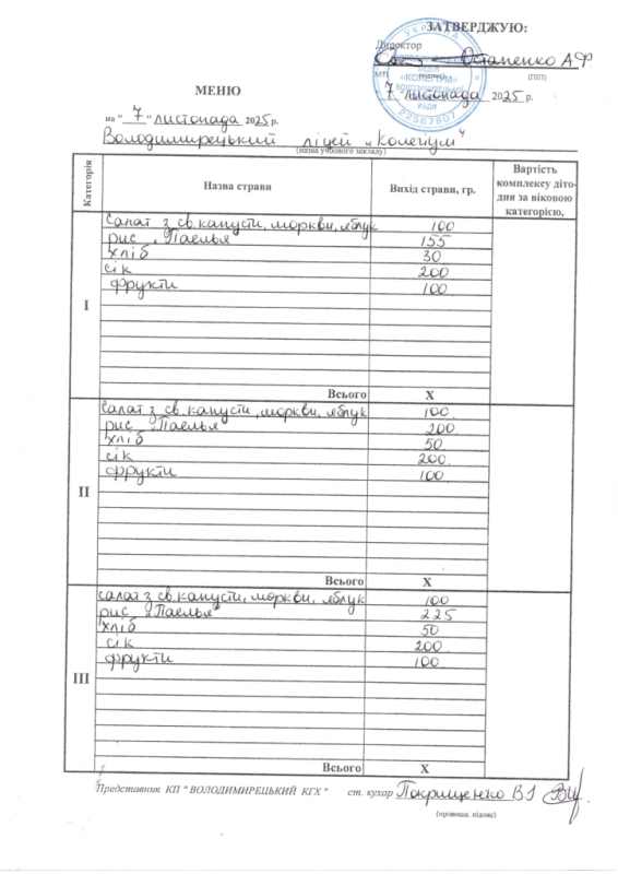 Меню на 07.11.2025