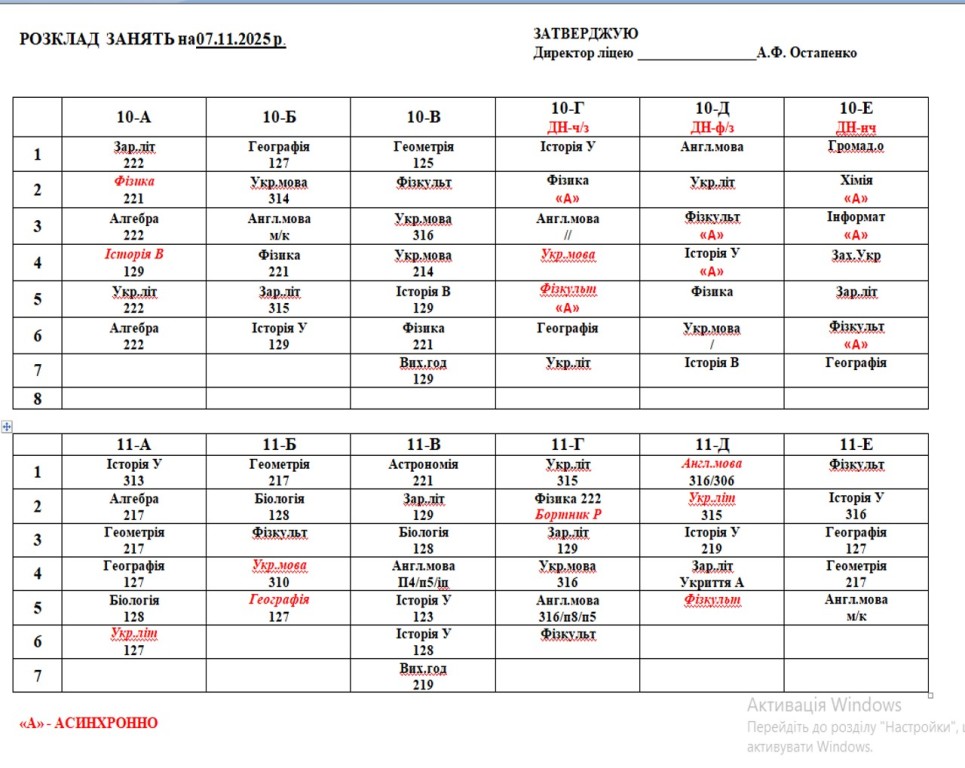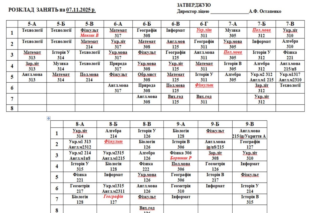 розклад навчальних занять