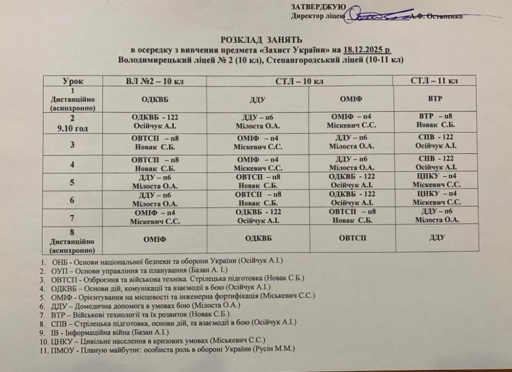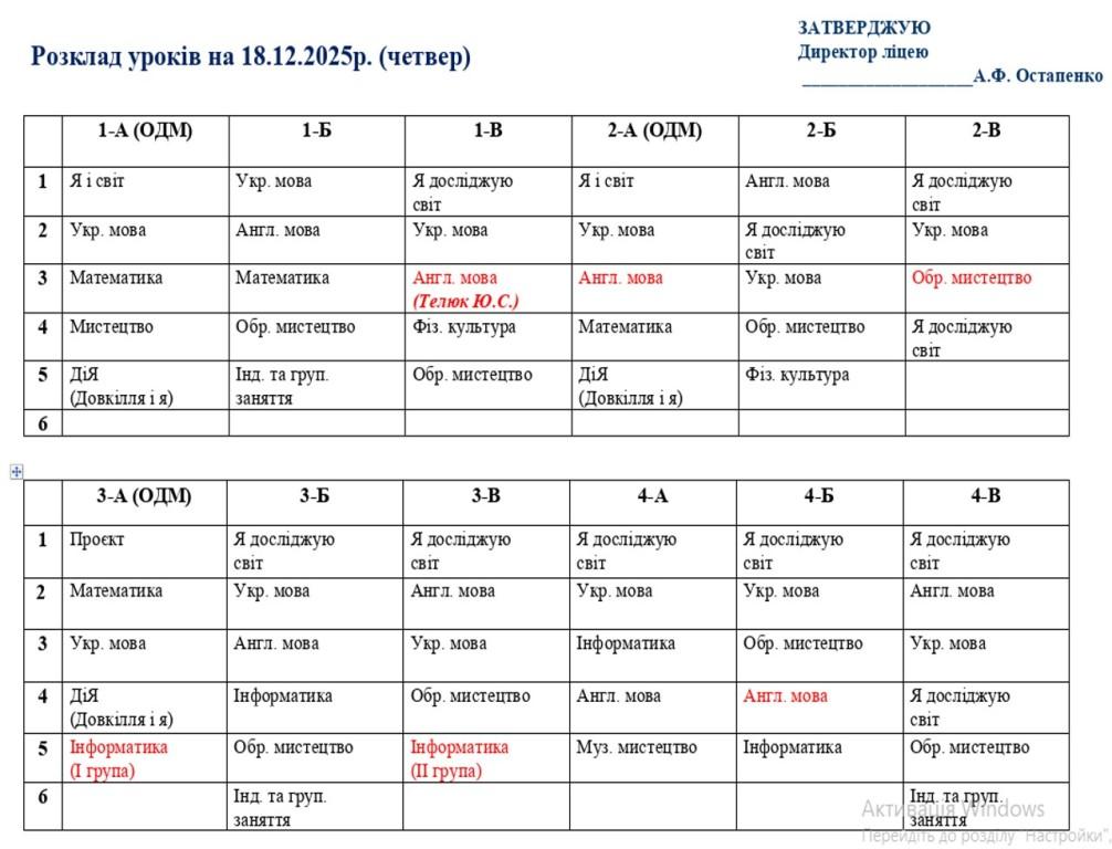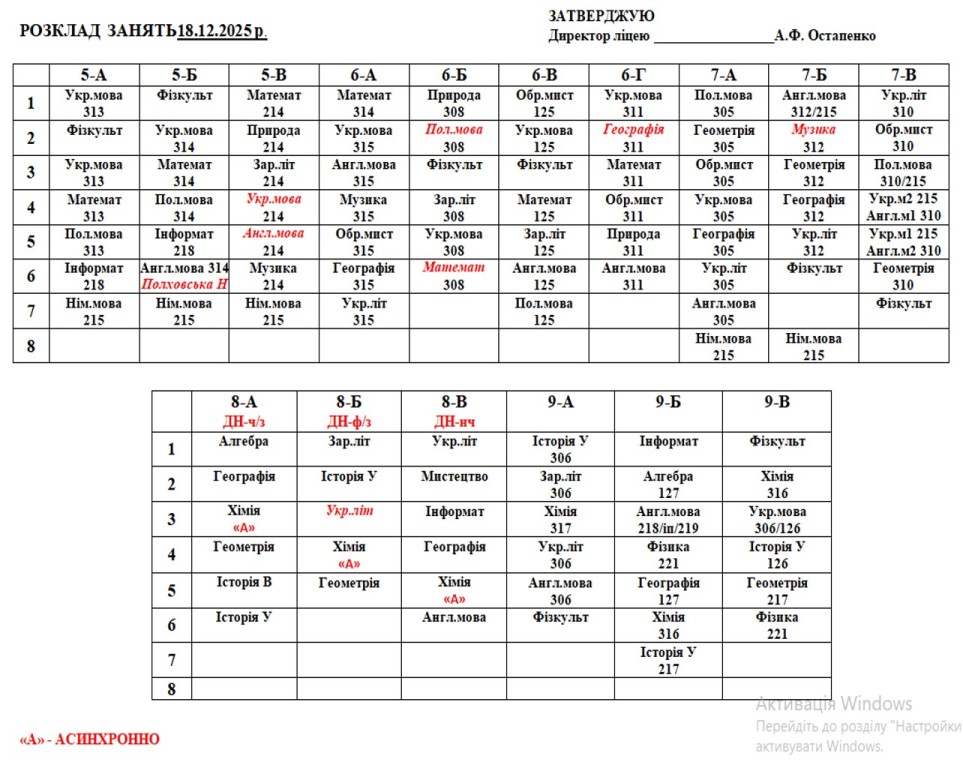 Розклад навчальних занять на 18.12.2025 року