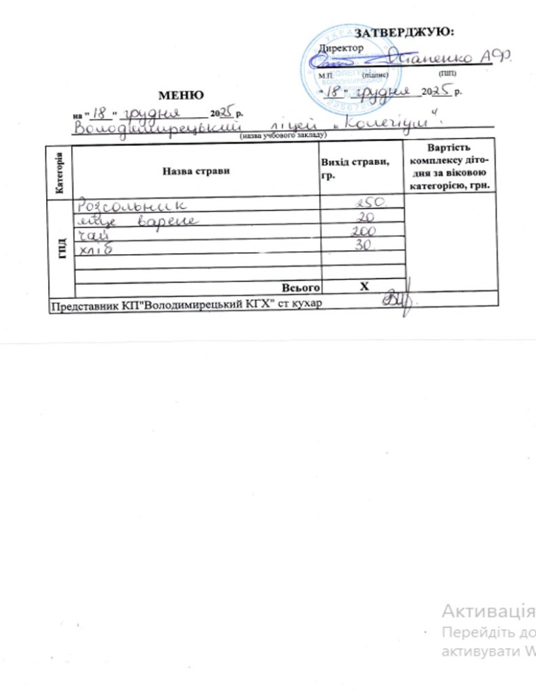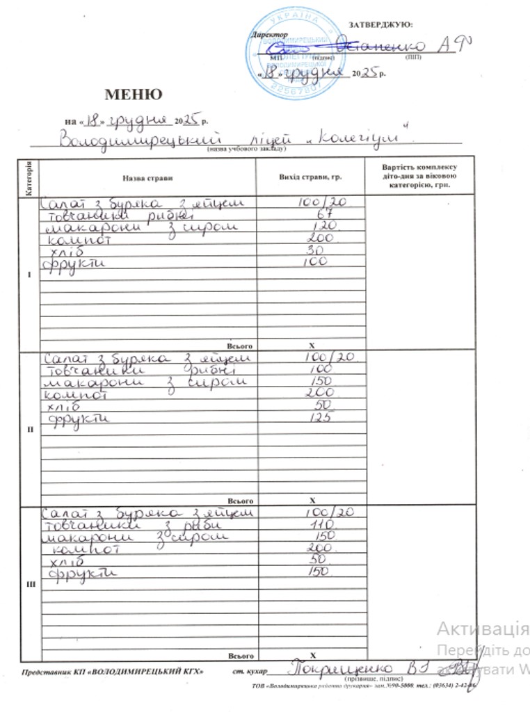 Меню на 18.12.2025 року