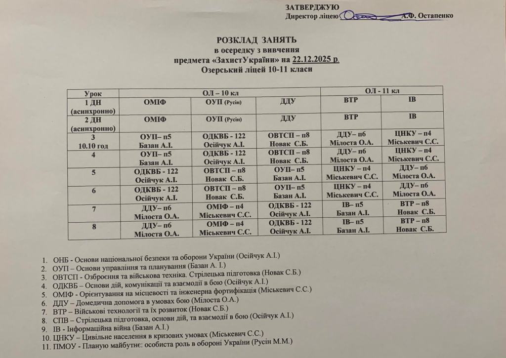 Освітній процес відновлюється з 12 січня 2026 року та проходитиме відповідно до затвердженого розкладу.