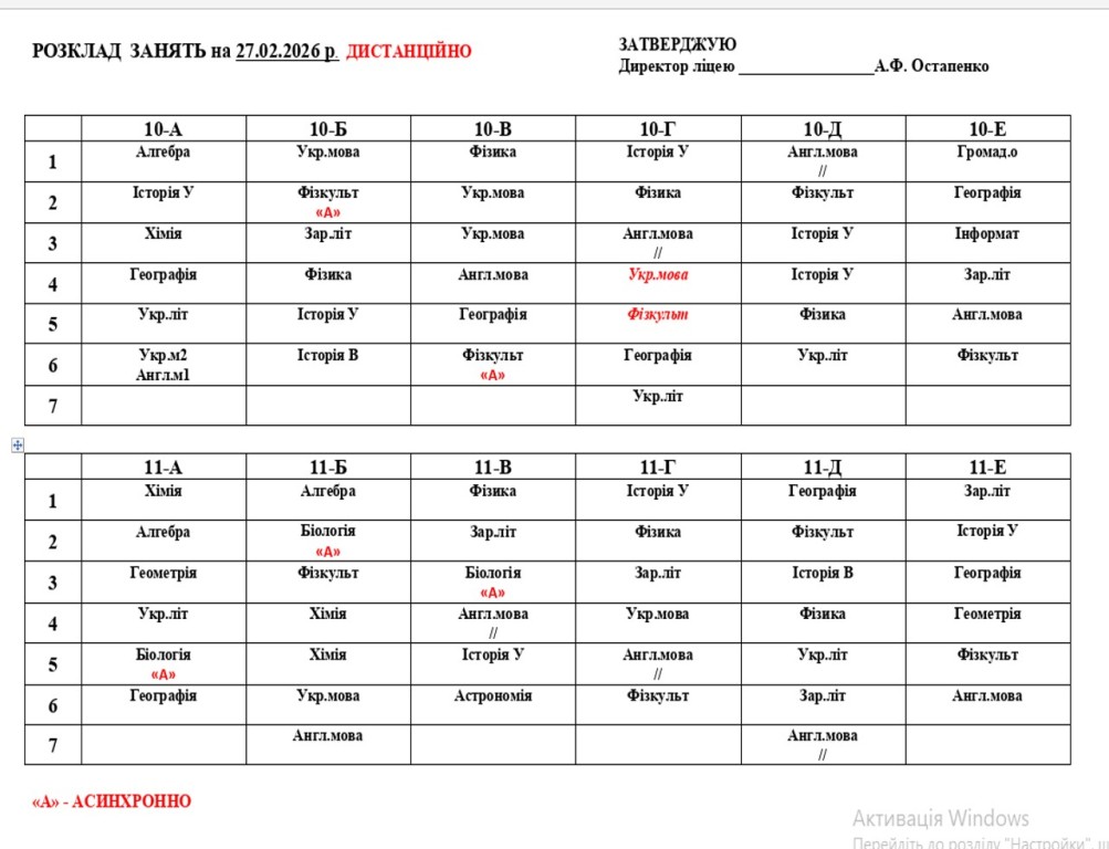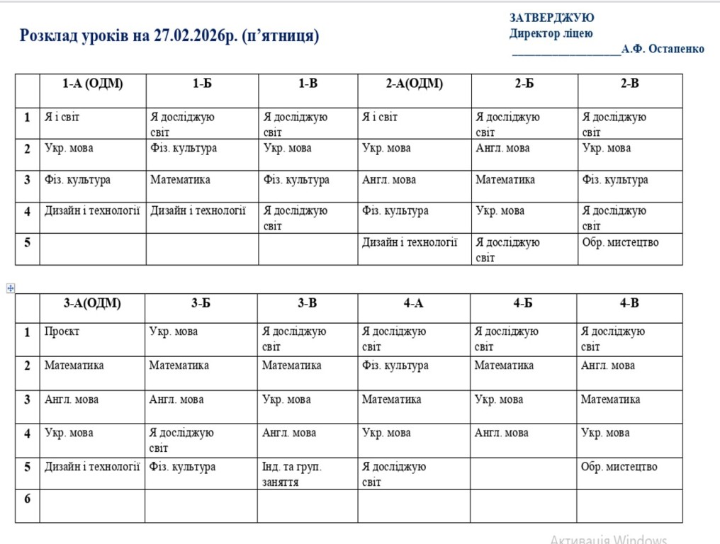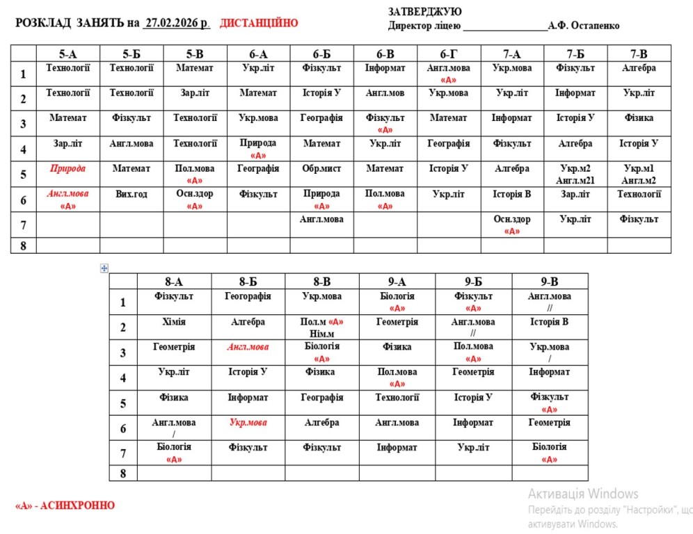 Розклад навчальних занять на 27.02.2026