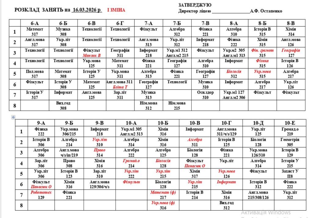 План заходів, спрямованих на запобігання та протидію булінгу (цькуванню) в закладі освіти