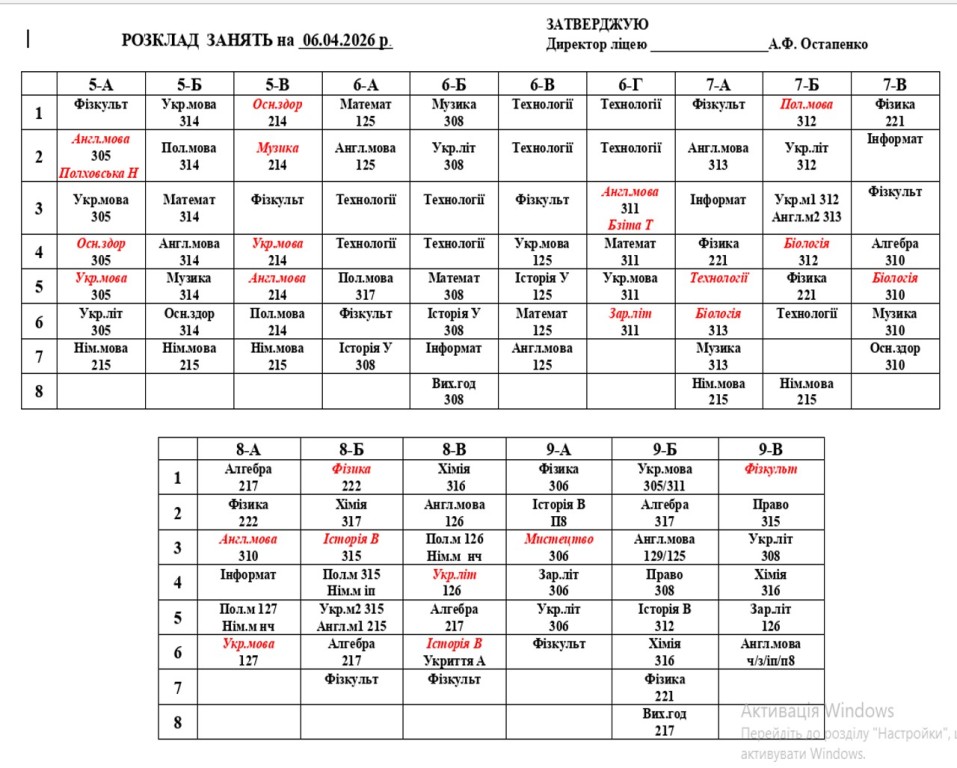 План заходів, спрямованих на запобігання та протидію булінгу (цькуванню) в закладі освіти