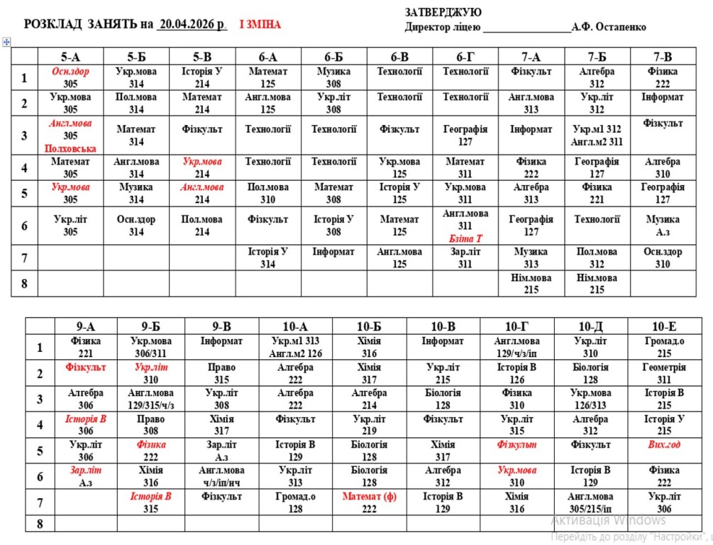 План заходів, спрямованих на запобігання та протидію булінгу (цькуванню) в закладі освіти