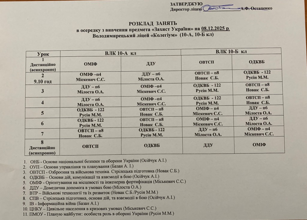 Наш заклад представляли: Анатолій ОСТАПЕНКО, директор ліцею, Людмила ВОЛЧЕЦЬКА, заступник директора, Андрій БАРАН, практичний психолог та Андрій ОСІЙЧУК, учитель предмета «Захист України».