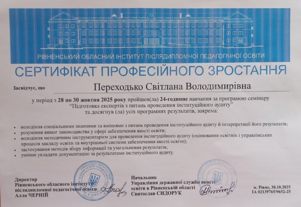 Підвищення кваліфікації з питань проведення інституційного аудиту