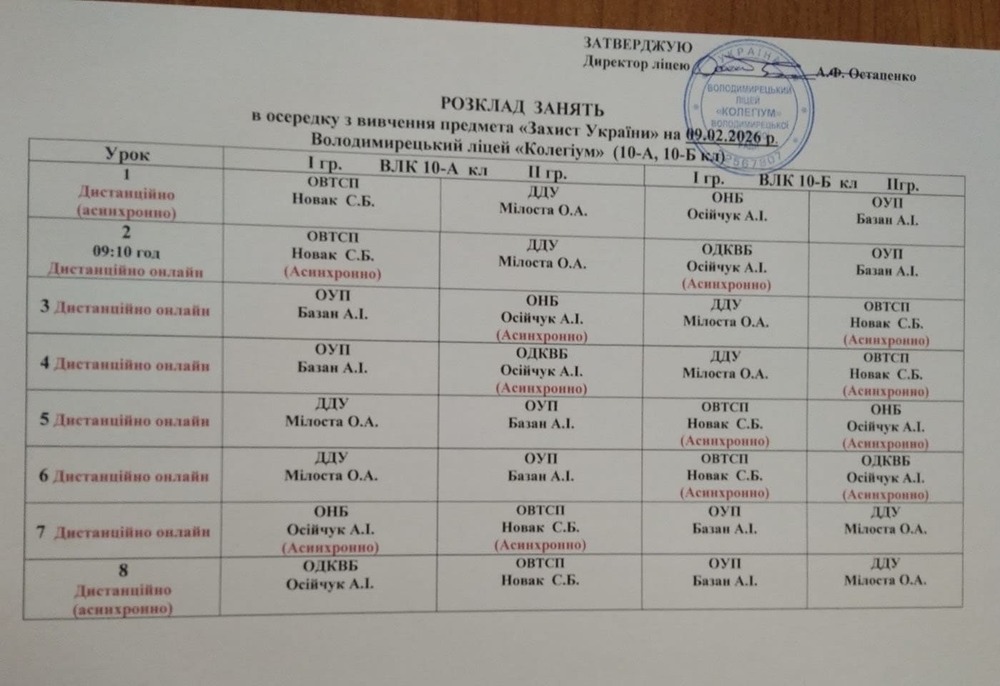 Розклад навчальних занять на 10.02.2026 року