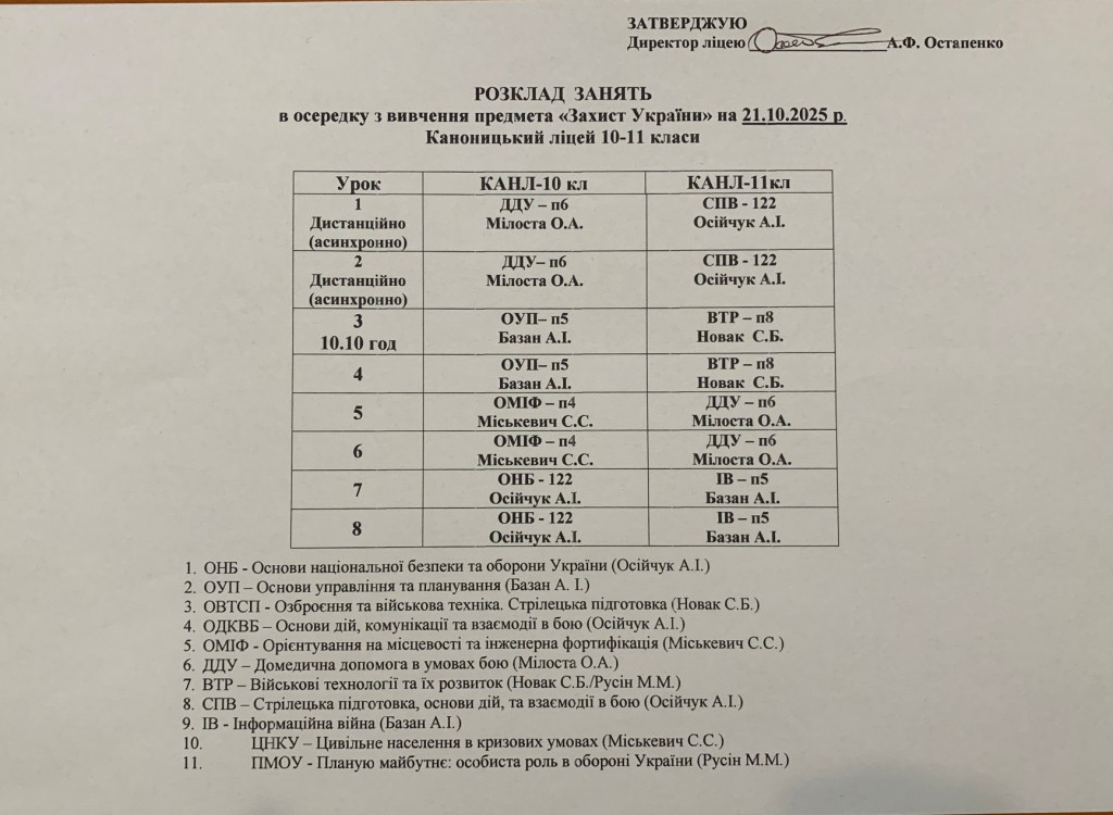 Розклад навчальних занять на 22.10.2025