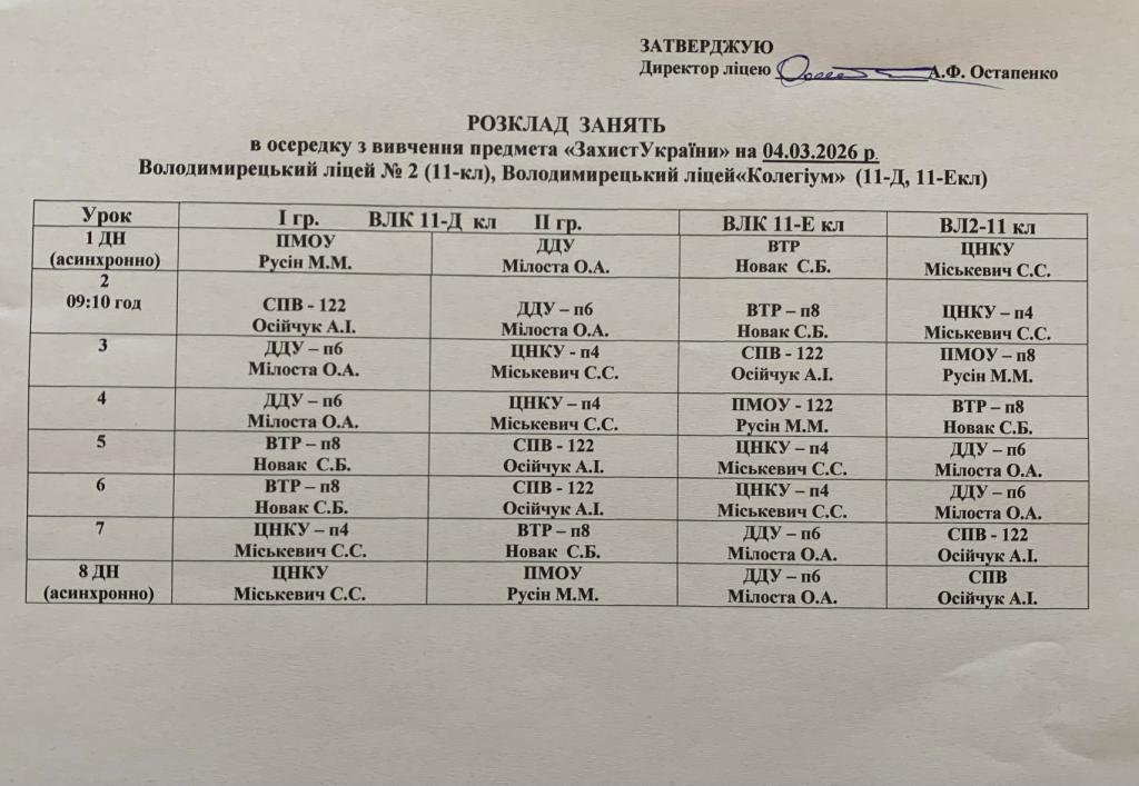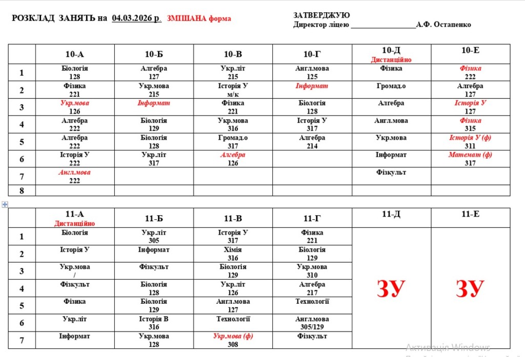 Розклад навчальних занятьна 04.03.2026