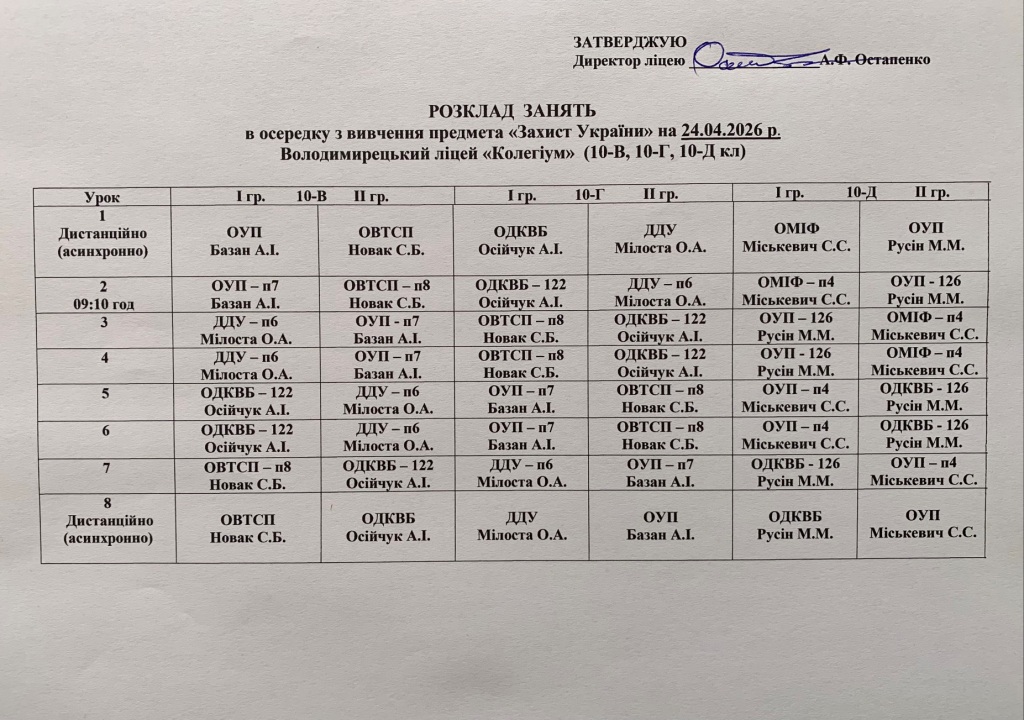 Розклад навчальних занять на 24.04.2026 року